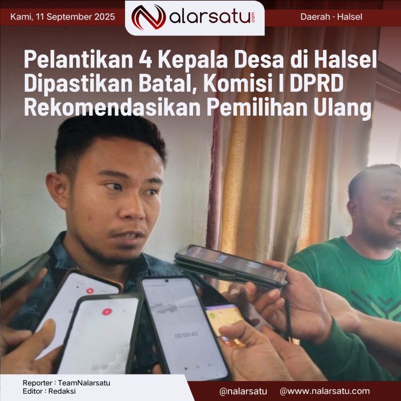 HALSEL, Nalarsatu.com – Polemik pelantikan empat kepala desa di Kabupaten Halmahera Selatan akhirnya mendapat titik terang. Komisi I DPRD Halsel resmi menindaklanjuti tuntutan massa aksi yang digelar pada Senin (8/9/2025), terkait pelantikan kades hasil sengketa Pilkades 2022.