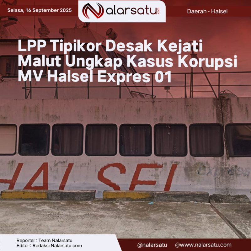 Halsel,Nalarsatu.com – Fungsionaris Lembaga Pengawasan dan Pemberantasan Tindak Pidana Korupsi (LPP Tipikor) Maluku Utara, Jumardin Ga’ale, mendesak Kejaksaan Tinggi (Kejati) Maluku Utara segera membuka kembali kasus dugaan korupsi pengadaan kapal cepat MV Halsel Expres 01 di Kabupaten Halmahera Selatan.