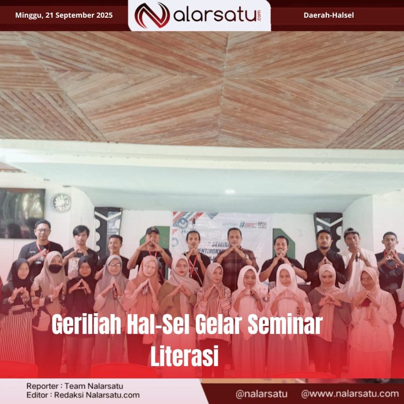 HALSEL, Nalarsatu.com – Gerakan Literasi Ilmiah (Geriliah) Halmahera Selatan berkolaborasi dengan  Badan Pengembangan dan Pembinaan Bahasa kementrian pendidikan dasar dan menengah bersama balai bahasa provinsi  Maluku Utara menggelar seminar literasi, Minggu (21/9/2025).