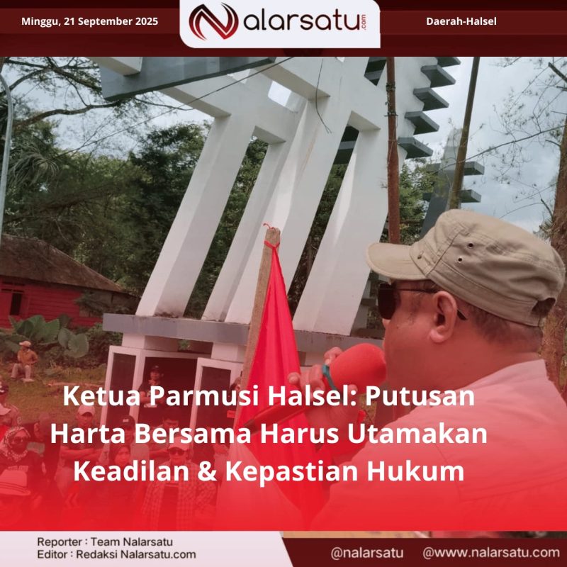 HALSEL, Nalarsatu.com – Menanggapi polemik perkara harta bersama antara Soleman Salasa dan Lasmi, Ketua Persaudaraan Muslimin Indonesia (Parmusi) Halmahera Selatan, Adi Hi Adam menekankan pentingnya prinsip keadilan dan kepastian hukum dalam setiap putusan pengadilan, khususnya yang menyangkut pembagian harta bersama dalam rumah tangga.