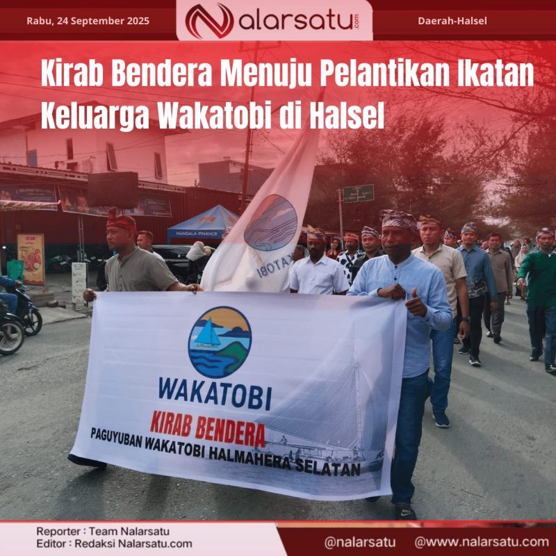 HALSEL, Nalarsatu.com – Menyambut pelantikan pengurus Ikatan Keluarga Wakatobi (IKW) Halmahera Selatan, sore ini Paguyuban Wakatobi menggelar kirab bendera dengan penuh semangat kebersamaan.