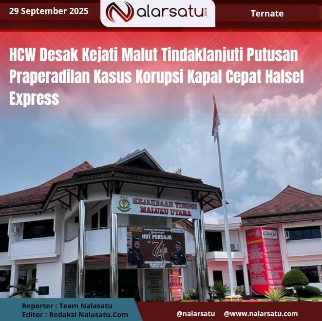 TERNATE, Nalarsatu.com – Putusan praperadilan yang dimenangkan pemohon di Pengadilan Negeri (PN) Ternate kembali membuka tabir lama kasus dugaan korupsi pengadaan kapal cepat MV Halsel Express. Halmahera Corruption Watch (HCW) Maluku Utara mendesak Kepala Kejaksaan Tinggi (Kejati) Maluku Utara dan Asisten Pidana Khusus (Aspidsus) segera menindaklanjuti putusan tersebut.