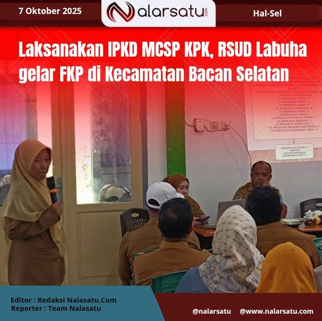 Langkah tersebut kini mulai dijalankan RSUD Labuha melalui kegiatan Forum Konsultasi Publik (FKP), Selasa (7/10/2025), bertempat di Kantor Camat Bacan Selatan. Kegiatan ini menjadi bagian dari pelaksanaan Indeks Pencegahan Korupsi Daerah Monitoring Controlling Surveillance for Prevention (IPKD-MCSP), sebuah sistem pengawasan dini yang menilai tata kelola pemerintahan di empat sektor strategis: perizinan, pendidikan, kesehatan, serta kependudukan dan catatan sipil.