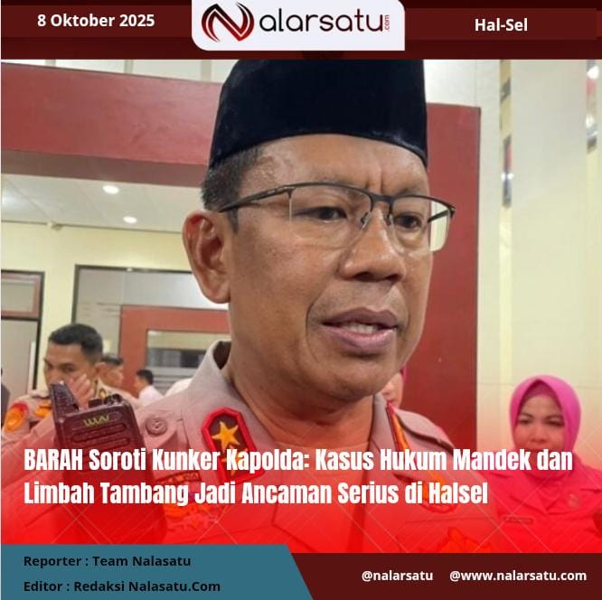 HALSEL, Nalarsatu.com – Kunjungan kerja (kunker) Kapolda Maluku Utara, Irjen Pol. Waris Wagono, di Kabupaten Halmahera Selatan kembali meninggalkan tanda tanya besar di kalangan publik. Ketua Barisan Rakyat Halmahera Selatan (BARAH), Adi Hi. Adam, menilai kunjungan tersebut tidak menyentuh akar persoalan hukum dan lingkungan yang selama ini menjadi keresahan masyarakat Halsel.