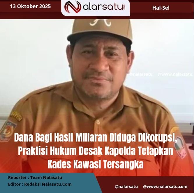 TERNATE, Nalarsatu.com – Praktisi hukum Maluku Utara, Safri Nyong S.H, mendesak keras Kapolda Maluku Utara Irjen Pol Drs. Waris Agono, M.Si. untuk segera menetapkan Kepala Desa Kawasi, Arifin Saroa, sebagai tersangka dalam kasus dugaan korupsi Dana Bagi Hasil (DBH) sektor pertambangan.