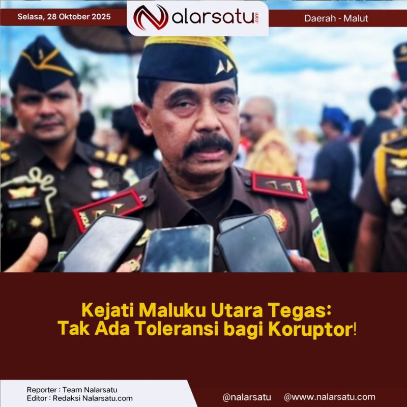 Maluku Utara, Nalarsatu.com – Kejaksaan Tinggi (Kejati) Maluku Utara menegaskan komitmennya untuk menumpas habis praktik korupsi di seluruh wilayah provinsi. Kepala Kejati Malut, Sufari, menegaskan, tidak ada ruang kompromi bagi siapapun yang terlibat dalam kejahatan yang merampas hak rakyat tersebut.
