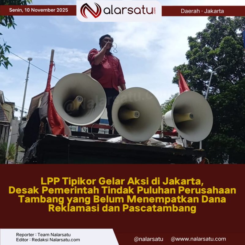 Jakarta, Nalarsatu.com – Puluhan aktivis yang tergabung dalam Lembaga Pengawasan dan Pemberantasan Tindak Pidana Korupsi (LPP Tipikor) Maluku Utara menggelar aksi unjuk rasa di Jakarta, Senin (10/11). Aksi ini dilakukan untuk mendesak pemerintah pusat segera menindak tegas perusahaan-perusahaan tambang di Maluku Utara yang diduga belum menempatkan Dana Jaminan Reklamasi dan Pascatambang, padahal kewajiban tersebut telah ditegaskan dalam UU Nomor 3 Tahun 2020 dan PP 78 Tahun 2010.