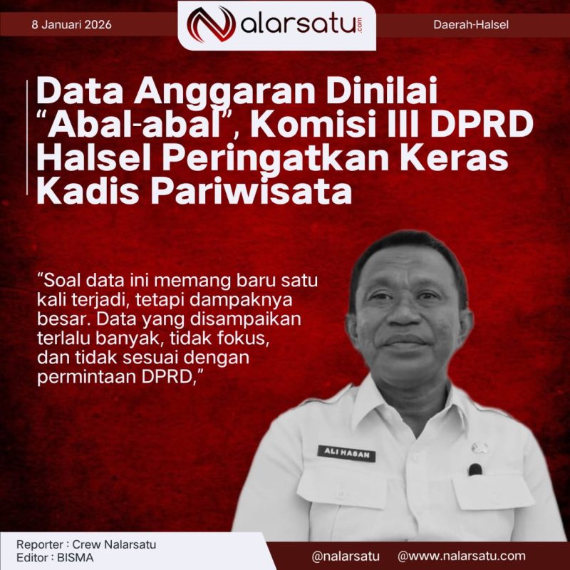 Labuha, Nalarsatu.com – Komisi III DPRD Kabupaten Halmahera Selatan melayangkan peringatan keras kepada Dinas Pariwisata menyusul ketidaksesuaian data anggaran yang disampaikan dalam rapat evaluasi akhir tahun. DPRD menilai data yang dipaparkan tidak akurat, tidak sinkron, bahkan jauh melenceng dari pagu anggaran yang sebenarnya.
