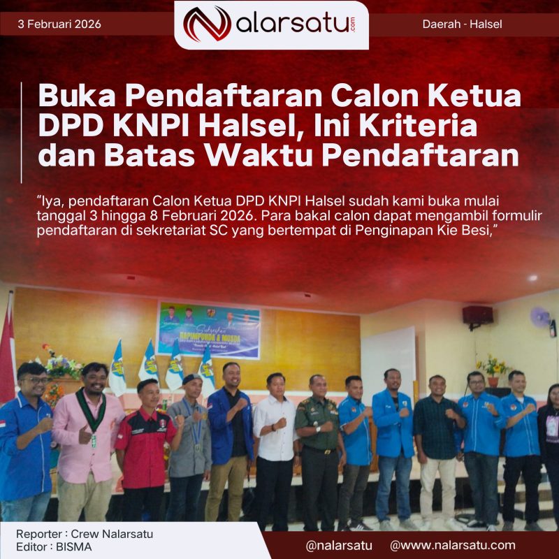 “Iya, pendaftaran Calon Ketua DPD KNPI Halsel sudah kami buka mulai tanggal 3 hingga 8 Februari 2026. Para bakal calon dapat mengambil formulir pendaftaran di sekretariat SC yang bertempat di Penginapan Kie Besi,” ujar Van.