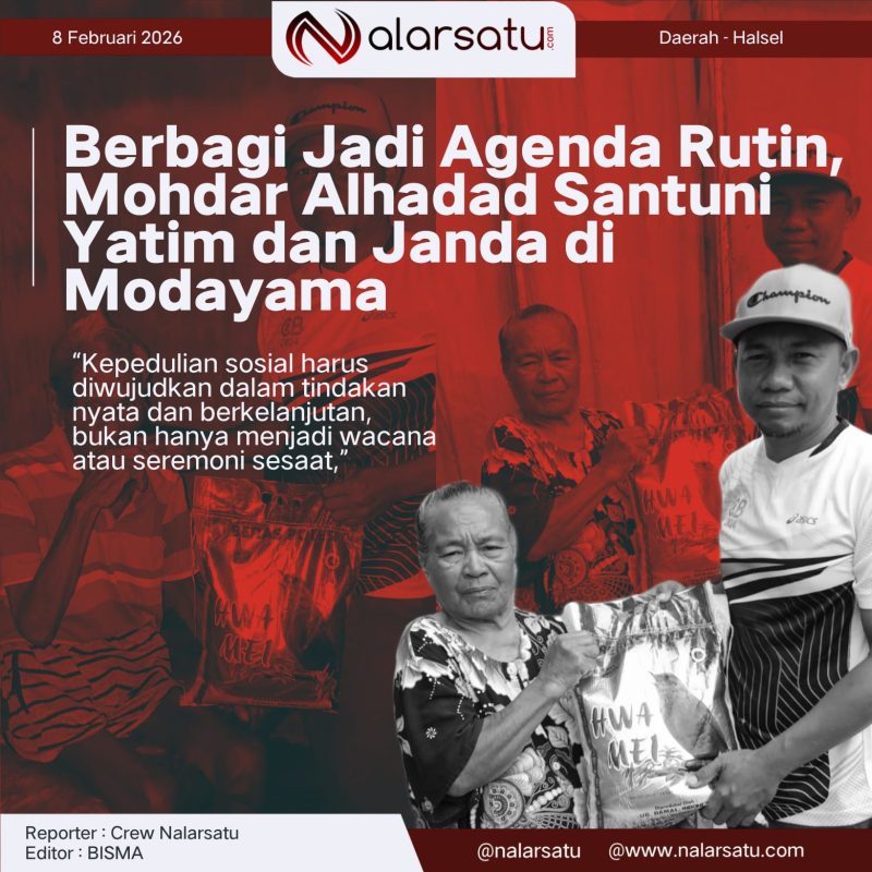 HALSEL, Nalarsatu.com – 2 Januari 2025.Aksi kepedulian sosial terus ditunjukkan oleh salah satu warga Desa Modayama, Kecamatan Kayoa Utara, Mohdar Alhadad. Kamis (2/1/2025), ia kembali menggelar kegiatan berbagi dengan menyalurkan santunan kepada anak yatim dan janda di desanya.