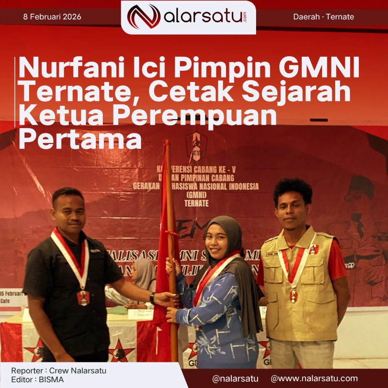 TERNATE, Nalarsatu.com-Dewan Pimpinan Cabang (DPC) Gerakan Mahasiswa Nasional Indonesia (GMNI) Kota Ternate resmi memasuki babak baru kepemimpinan. Untuk pertama kalinya dalam sejarah GMNI Ternate, posisi ketua cabang diemban oleh seorang perempuan. Nurfani Ici terpilih sebagai Ketua DPC GMNI Kota Ternate periode 2026-2028, menandai langkah progresif organisasi dalam mendorong kesetaraan dan regenerasi kepemimpinan.