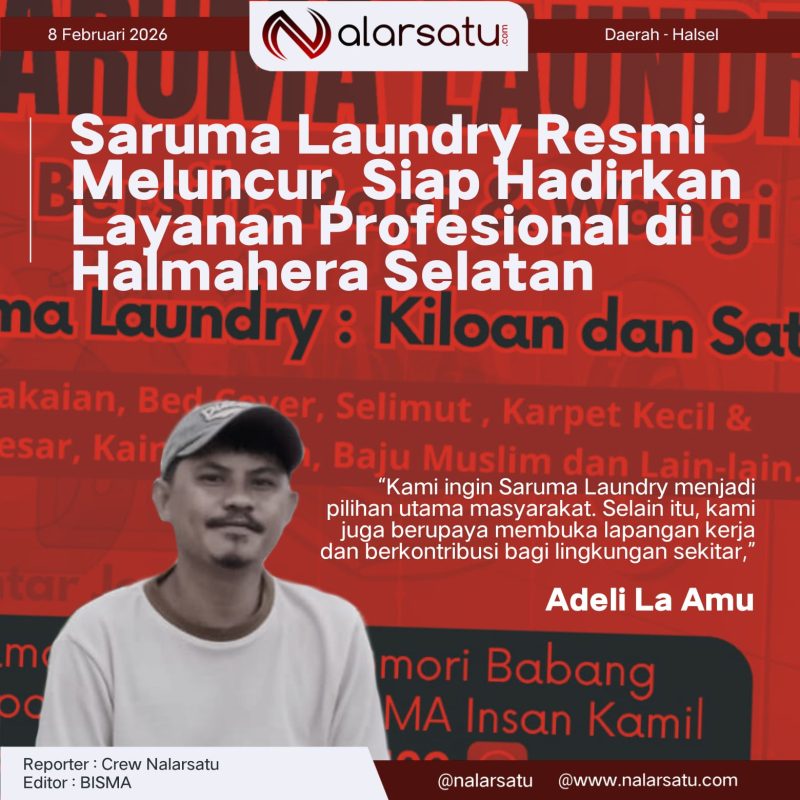 BACAN, Nalarsatu.com – Saruma Laundry resmi diluncurkan pada Minggu (8/2/2026) dan mulai beroperasi melayani kebutuhan masyarakat akan jasa pencucian pakaian yang cepat, bersih, dan terpercaya.