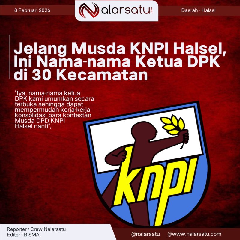 HALSEL, Nalarsatu.com – Menjelang pelaksanaan Musyawarah Daerah (Musda) Dewan Pengurus Daerah Komite Nasional Pemuda Indonesia (DPD KNPI) Kabupaten Halmahera Selatan (Halsel) yang dijadwalkan berlangsung pada 13 Februari 2026, pengurus DPD KNPI Halsel resmi merilis nama-nama Ketua Dewan Pengurus Kecamatan (DPK) di 30 kecamatan se-Halmahera Selatan, Provinsi Maluku Utara (Malut).