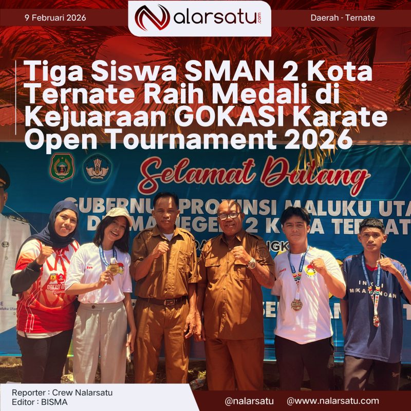 Ternate, Nalarsatu.com — Prestasi membanggakan kembali ditorehkan siswa SMAN 2 Kota Ternate. Tiga siswa sekolah tersebut sukses meraih medali dalam ajang GOKASI Karate Open Tournament 2026 yang digelar di Kota Ternate pada 7–9 Februari 2026. Ketiga atlet tersebut diketahui merupakan binaan INKAI Kota Ternate.