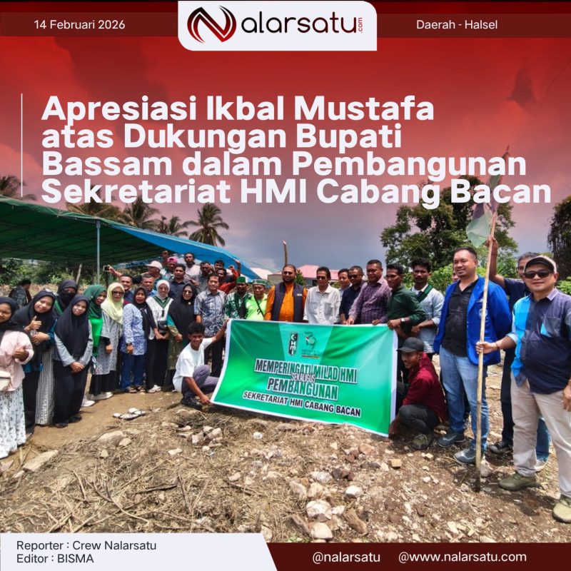 HALSEL, Nalarsatu.com – Bupati Halmahera Selatan menghadiri prosesi peletakan batu pertama pembangunan Sekretariat Himpunan Mahasiswa Islam (HMI) Cabang Bacan yang berlangsung khidmat dan penuh semangat kebersamaan. Momentum ini menjadi penanda awal penguatan infrastruktur organisasi kepemudaan di Kabupaten Halmahera Selatan.