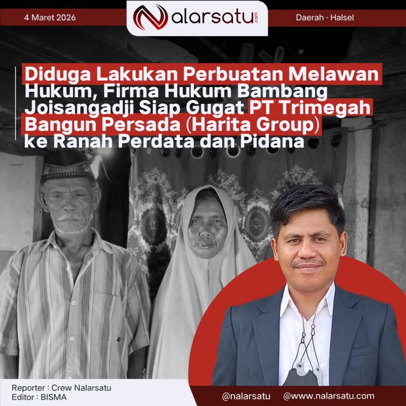 BACAN, Nalarsatu.com – PT Trimegah Bangun Persada (TBP), bagian dari Harita Group, diduga melakukan Perbuatan Melawan Hukum (PMH) berupa penyerobotan lahan dan pengerusakan tanaman milik warga di Pulau Obi, Kabupaten Halmahera Selatan.