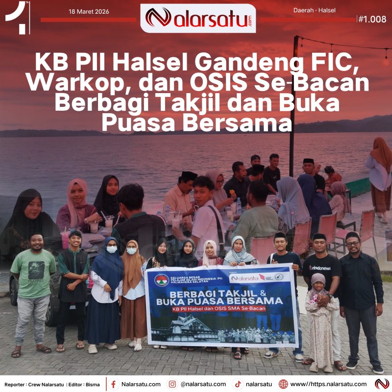 Labuha, Nalarsatu.com – Keluarga Besar Pelajar Islam Indonesia (KB PII) Halmahera Selatan menggandeng Forum Insan Cendekia (FIC), Wartawan dan Komunitas Penulis serta OSIS se-Bacan menggelar kegiatan berbagi takjil gratis dan buka puasa bersama pada Rabu, 18 Maret 2026.