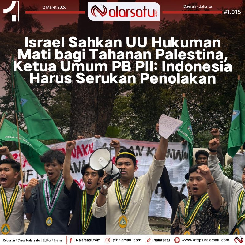 JAKARTA, Naalarsatu.com— Ketua umum pengurus besar Pelajar Islam Indonesia (PB PII), Kevin Prayoga mengecam keras langkah Israel yang mengesahkan Undang-Undang (UU) hukuman mati terhadap tahanan Palestina. Sebagai Ketua Dewan HAM PBB, Kevin berharap Indonesia harus bertindak dan ambil sikap.