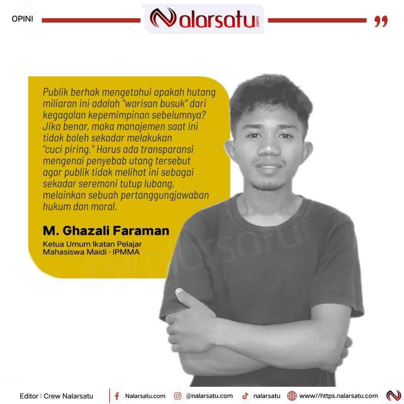 Publik berhak mengetahui apakah hutang miliaran ini adalah “warisan busuk” dari kegagalan kepemimpinan sebelumnya? Jika benar, maka manajemen saat ini tidak boleh sekadar melakukan “cuci piring.” Harus ada transparansi mengenai penyebab utang tersebut agar publik tidak melihat ini sebagai sekadar seremoni tutup lubang, melainkan sebuah pertanggungjawaban hukum dan moral. Jangan sampai pelunasan ini hanya menjadi kedok untuk menutupi malpraktik anggaran yang pernah terjadi.
