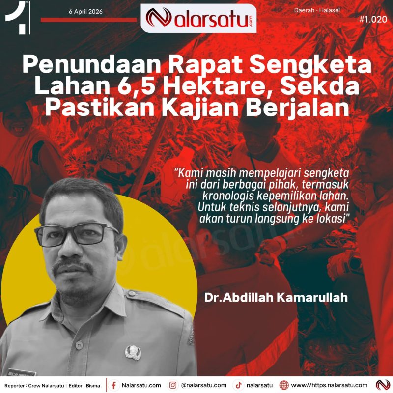 Labuha, Nalarsatu.com – Pemerintah Kabupaten Halmahera Selatan menunda pelaksanaan rapat penyelesaian sengketa lahan seluas 6,5 hektare di Desa Soligi, Kecamatan Obi Selatan, antara Alimusu La Damili dan Kades Kawasi Arifin Saroa yang sebelumnya dijadwalkan berlangsung pada Senin, 6 April 2026. Rapat tersebut rencananya digelar di Ruang Rapat Sekretaris Daerah, Lantai 2 Kantor Bupati.