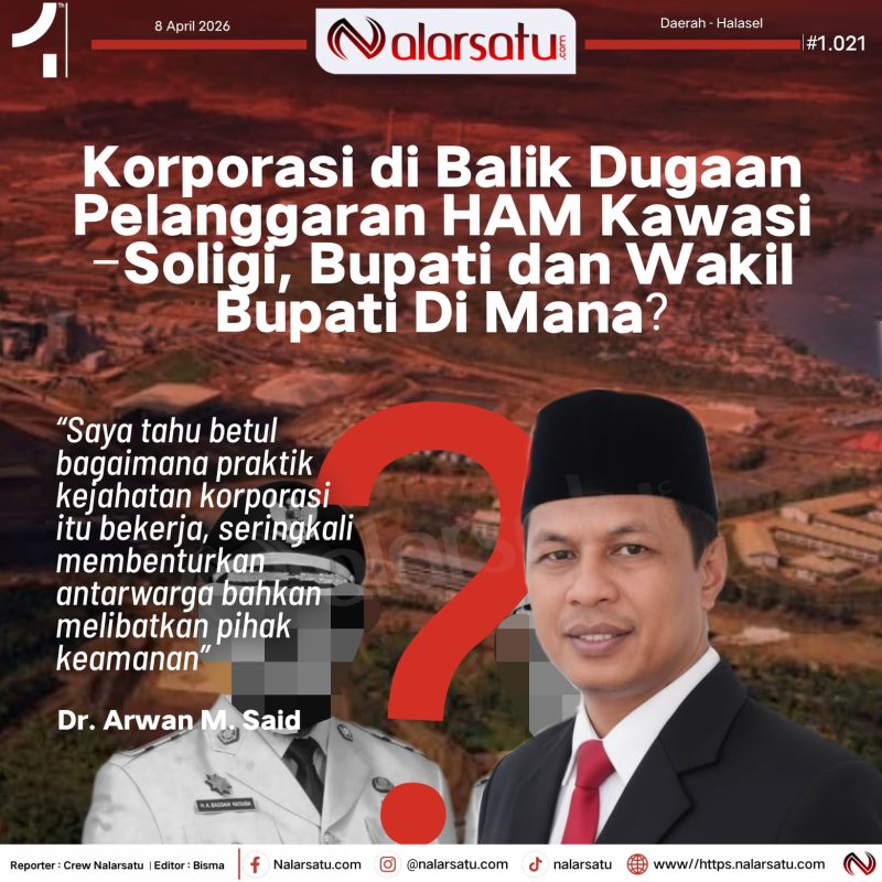 Halmahera Selatan, Nalarsatu.com – Konflik lahan di wilayah Kawasi–Soligi, Kabupaten Halmahera Selatan, kembali menjadi sorotan publik. Persoalan ini disebut tidak hanya terjadi di Desa Soligi, tetapi juga telah lebih dulu dialami warga Kawasi sejak beroperasinya perusahaan tambang Harita Group di wilayah tersebut.