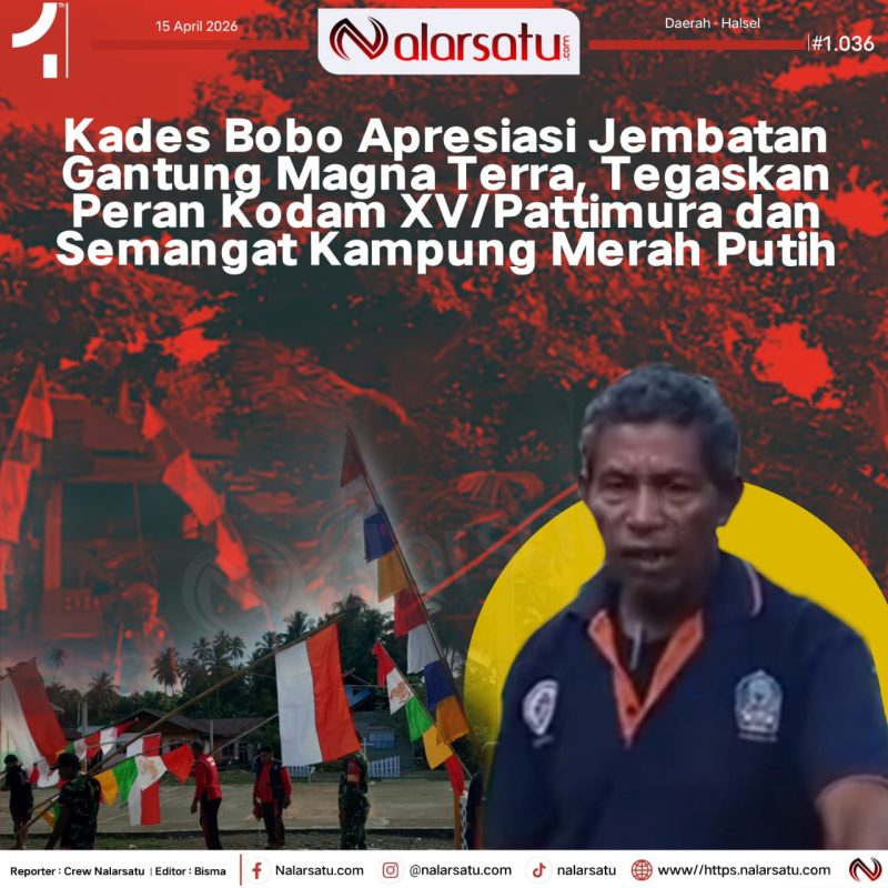 Halmahera Selatan, Nalarsatu.com – Kepala Desa Bobo, Kecamatan Obi Selatan, Kabupaten Halmahera Selatan, Zeth Jems Totononu, menyampaikan apresiasi atas pembangunan jembatan gantung Magna Terra yang kini menjadi salah satu infrastruktur penting bagi masyarakat setempat.