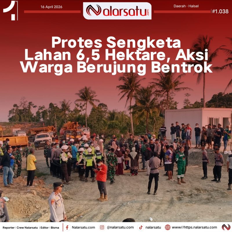 HALSEL,Nalarsatu.com – Ketegangan pecah di wilayah operasional PT Harita Group, Kamis (16/04/2026) sore, saat massa aksi dari keluarga Alimusu La Damili bersama warga Desa Soligi, Kecamatan Obi Selatan, Kabupaten Halmahera Selatan, melakukan pemblokiran jalan utama perusahaan.