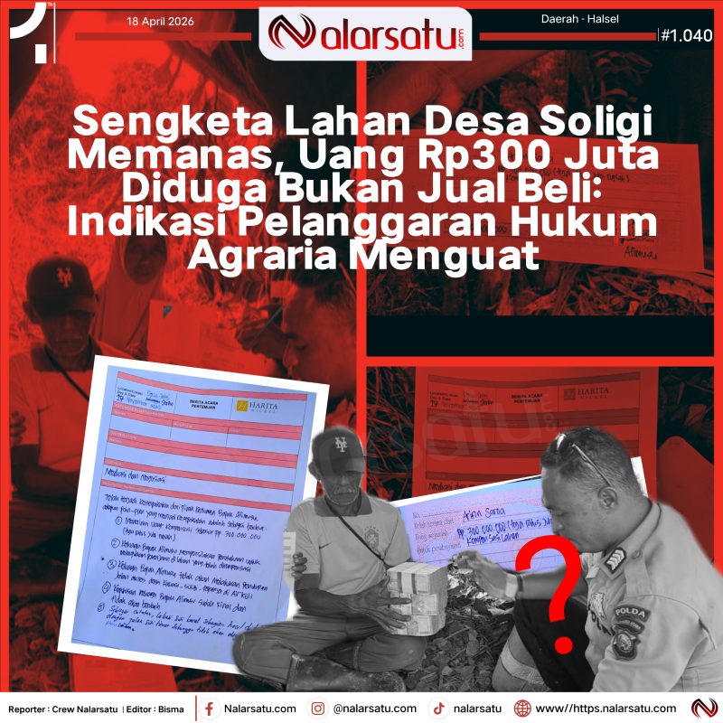 Halsel, Nalarsatu.com– Sengketa lahan di Desa Soligi, Kecamatan Obi Selatan, semakin memanas dan menunjukkan kompleksitas serius, terutama terkait legalitas transaksi yang dijadikan dasar penguasaan lahan oleh pihak tertentu. Keluarga Alimusu La Damili secara tegas membantah bahwa uang sebesar Rp300 juta yang diterima merupakan bagian dari praktik jual beli tanah.