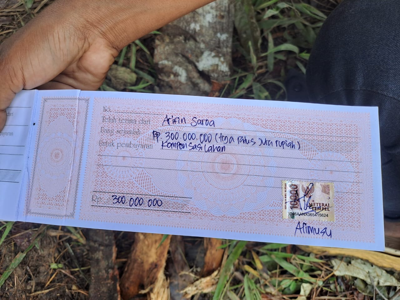 Kuitansi Kompensasi 300 Juta Atas Nama Arifin Saroa di berikan Oleh LA Harita Grup Billy & Anggota Polri Juan Joisangadji
