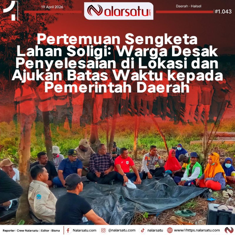 Halsel, Nalarsatu.com – Pertemuan antara Tim Penyelesaian Sengketa Lahan Kabupaten Halmahera Selatan dengan masyarakat Desa Soligi, khususnya keluarga Bapak La Alimusu La Damili, telah digelar pada 18 April 2026 di Desa Soligi. Pertemuan ini merupakan tindak lanjut dari arahan Bupati Halmahera Selatan guna menyerap aspirasi masyarakat sekaligus mencari jalan keluar atas konflik lahan yang melibatkan pihak perusahaan PT Harita Grup dan Kepala Desa Kawasi, Arifin Saroa.