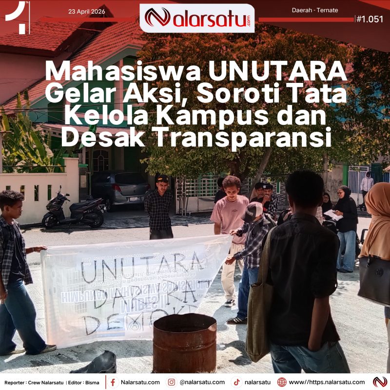 Ternate, Nalarsatu.com – Sejumlah mahasiswa Universitas Nahdlatul Ulama Maluku Utara (UNUTARA) yang tergabung dalam Aliansi Mahasiswa Unutara Menggugat menggelar aksi demonstrasi di depan Graha kampus UNUTARA, Kamis (23/4/2026).