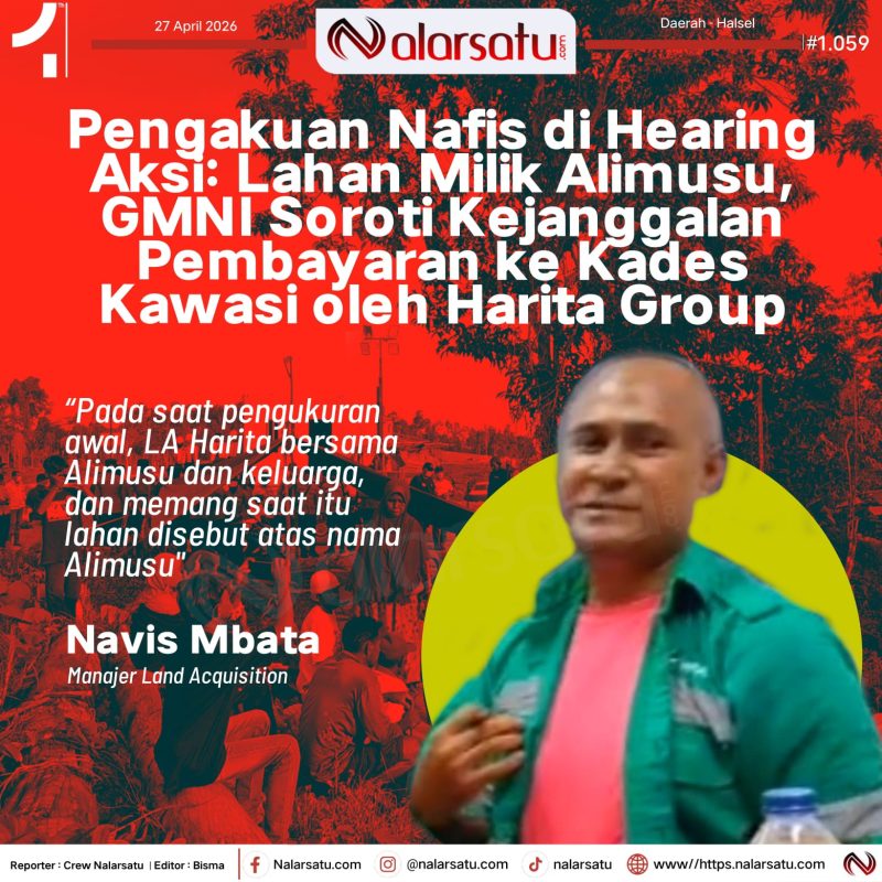 Halmahera Selatan, Nalarsatu.com – Polemik kepemilikan lahan kembali memanas dalam rapat hearing yang digelar di ruang CSR terkait aktivitas penyerobotan lahan oleh PT Harita Group. Dalam forum tersebut, pernyataan perwakilan perusahaan, Navis Mbata, kembali menjadi sorotan karena dinilai belum mampu memberikan penjelasan yang utuh terkait dasar kepemilikan maupun mekanisme pembayaran lahan.