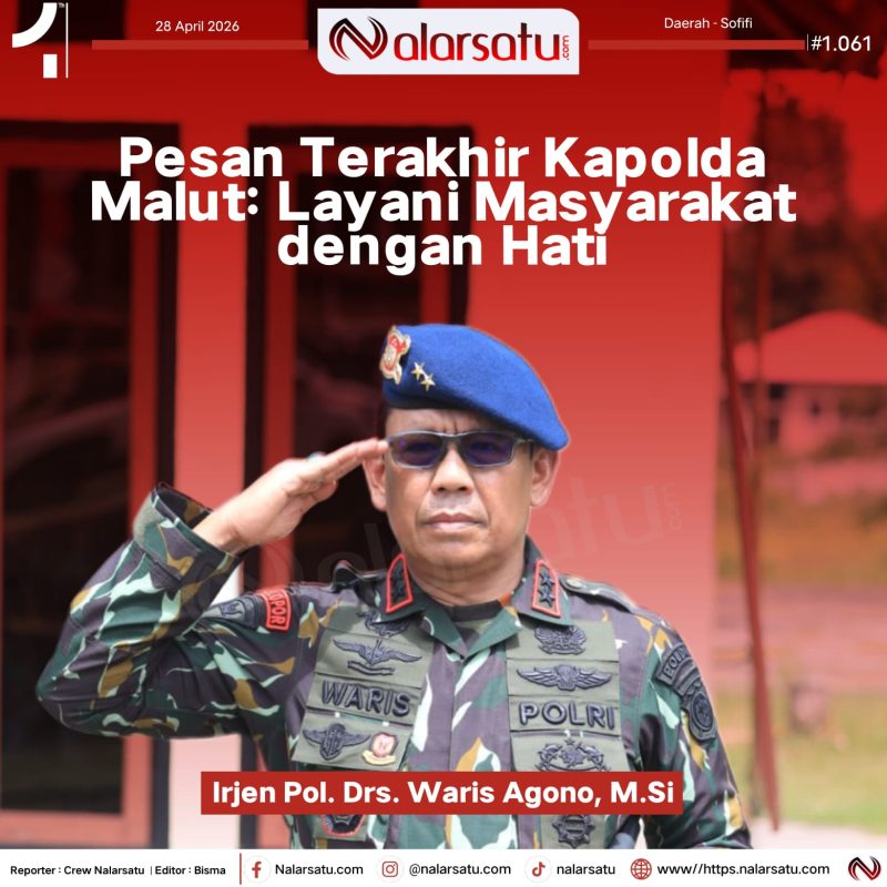 Sofifi, Nalarsatu.com – di akhir masa jabatannya, Kapolda Maluku Utara, Irjen Pol. Drs. Waris Agono, M.Si. menegaskan bahwa inti dari tugas kepolisian terletak pada kerja dengan hati, sesuai fungsi Polri sebagai pelindung, pengayom, dan pelayan masyarakat.