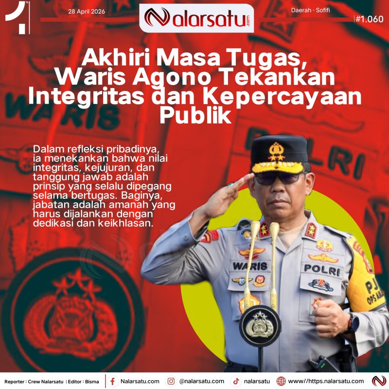 Sofifi, Nalarsatu.com – Menjelang akhir masa jabatannya, Kapolda Maluku Utara, Irjen Pol. Drs. Waris Agono, M.Si., menutup pengabdiannya dengan satu penegasan utama, pentingnya menjaga integritas dan merawat kepercayaan publik. Dalam wawancara via WhatsApp dengan Nalarsatu.com, ia memaknai masa kepemimpinannya bukan sekadar menjalankan tugas struktural, melainkan membangun hubungan yang kuat antara institusi Polri dan masyarakat.
